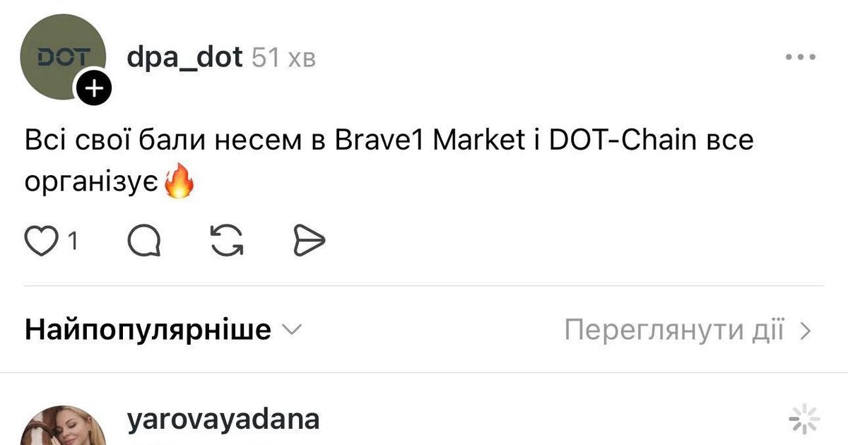 На що Державний оператор тилу пропонує Міністерству оборони України внести є-бали підрозділу на Brave1 Market, де система DOT-Chain все організує (про автоматизовану систему виробництва та логістики дронів DOT-Chain Arsenal я розказував пару дописів тому).