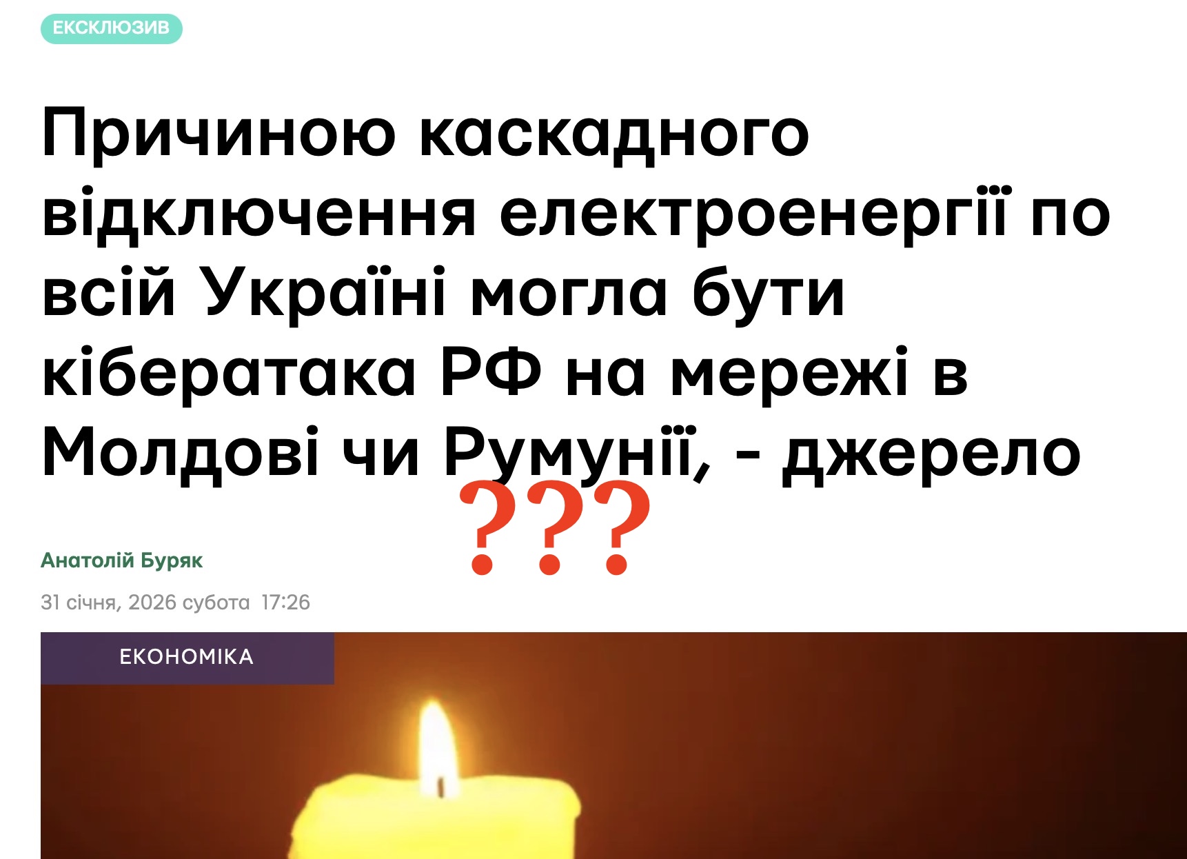 То чи був блекаут 31 січня 2026 - спричинений кібератакою?