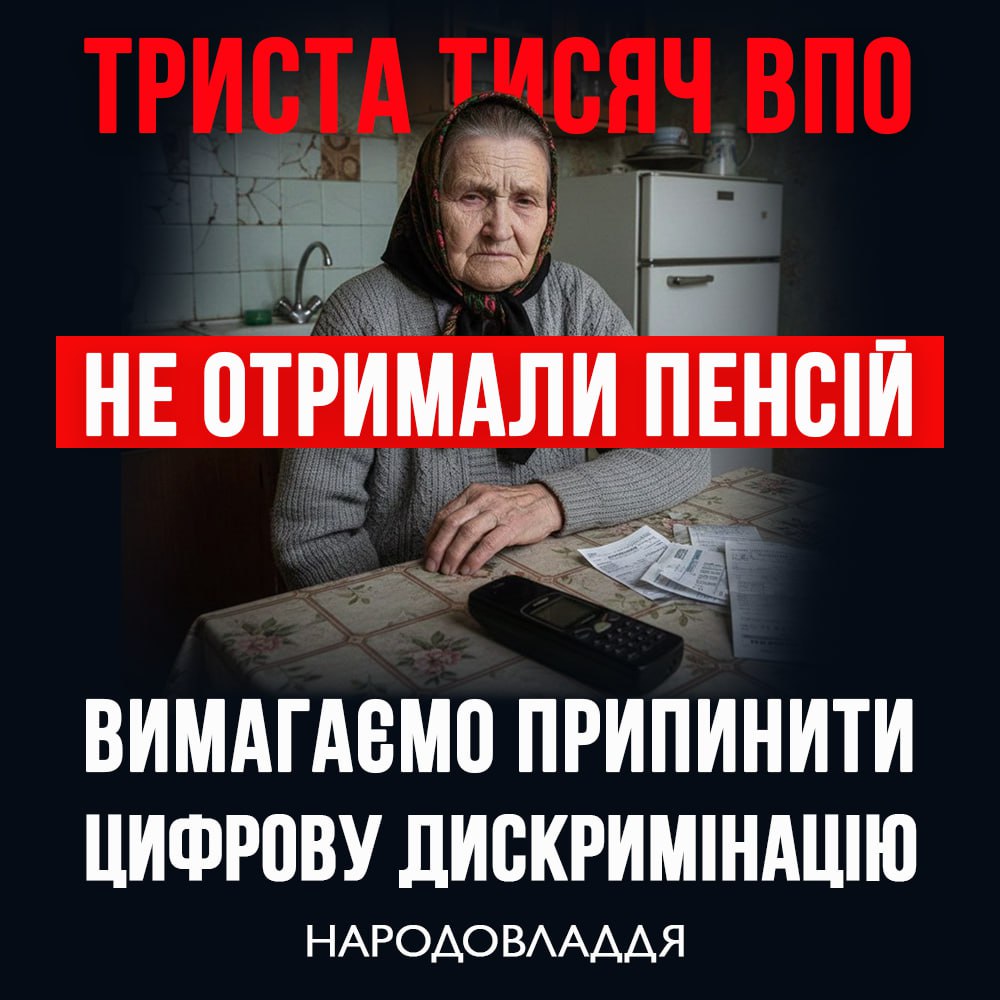 Наша партія людей праці Народовладдя вимагає від Кабінету Міністрів України негайно вжити заходів для виплати пенсій всім пенсіонерам - ВПО. Зокрема скасувати недолуге рішення про самостійну ідентифікацію пенсіонерів - ВПО, забезпечивши в разі потреби таку верифікацію відповідними органами державної влади. При цьому, у разі обʼєктивної неможливості провести верифікацію без особистої участі пенсіонера, людині мають бути надані гуманні строки та обраний в індивідуальному порядку саме той шлях верифікації, який їй підходить.