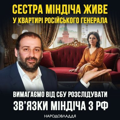 Наша партія людей праці Народовладдя вимагає від СБУ провести всебічне розслідування щодо зв'язків Міндіча та його оточення з РФ. Зокрема, - щодо пов'язаних із Міндічем колишніх і нинішніх топ-посадовців - Єрмака, Татарова, Чернишова, Галущенка, Гринчук, Умєрова тощо.