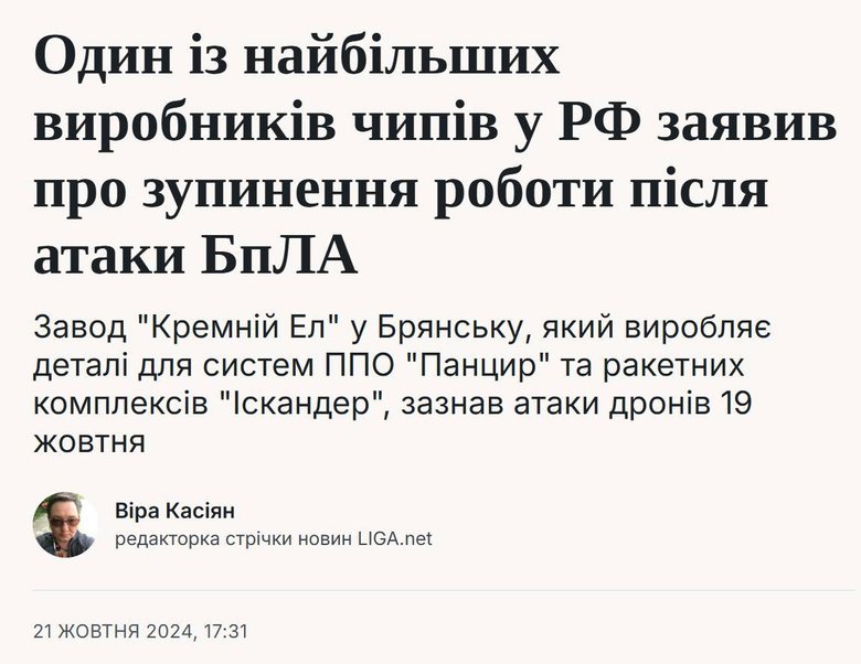 Зруйнувати завод ми не могли, а ось серйозно пошкодити життєво важливі для вирощування напівпровідників системи - так. Після удару в ніч на 20 жовтня 2024 року завод зупинив роботу на кілька тижнів.