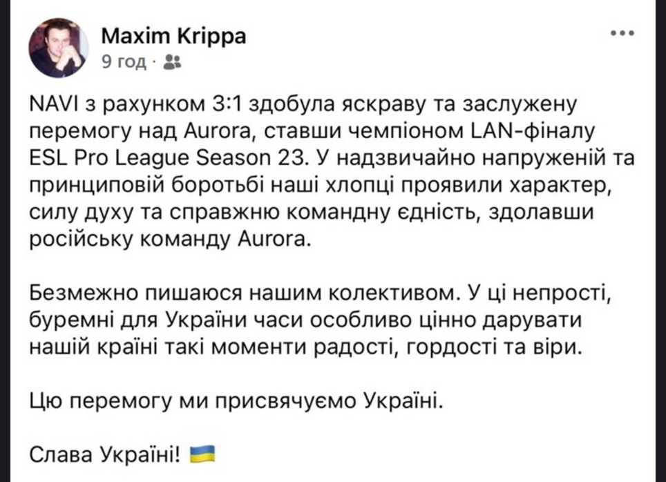 Перемога NAVI над Aurora з рахунком 3:1 у фіналі ESL Pro League для українського вболівальника мала специфічний присмак. На сервері зійшлися не просто гравці в Counter-Strike. З одного боку — головний український клуб, з іншого – команда, яка хоч і мімікрує під сербських «братушек», але всім зрозуміло, звідки в неї ростуть ноги, менеджмент і капітал. Це російська команда, як би вона не намагалася сховатися за формальною реєстрацією в Белграді.