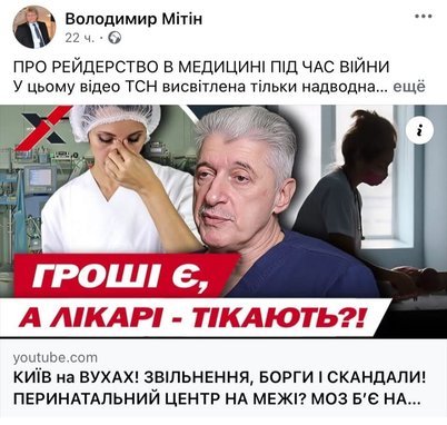 Також у публічному просторі звертається увага на те, що Володимир Мітін не має медичної освіти, що додатково актуалізує питання його ролі в медичній сфері.