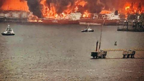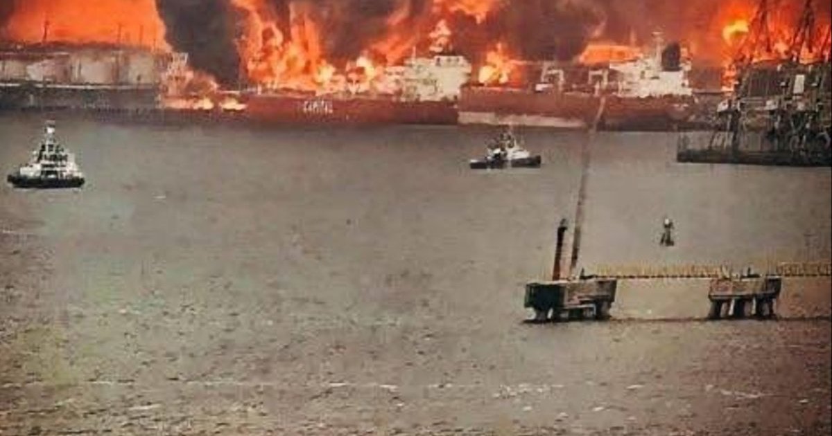 P.S. на фото — спалений українськими дронами Усть-Луга — ключовий для експорту нафти московський порт на Балтиці .