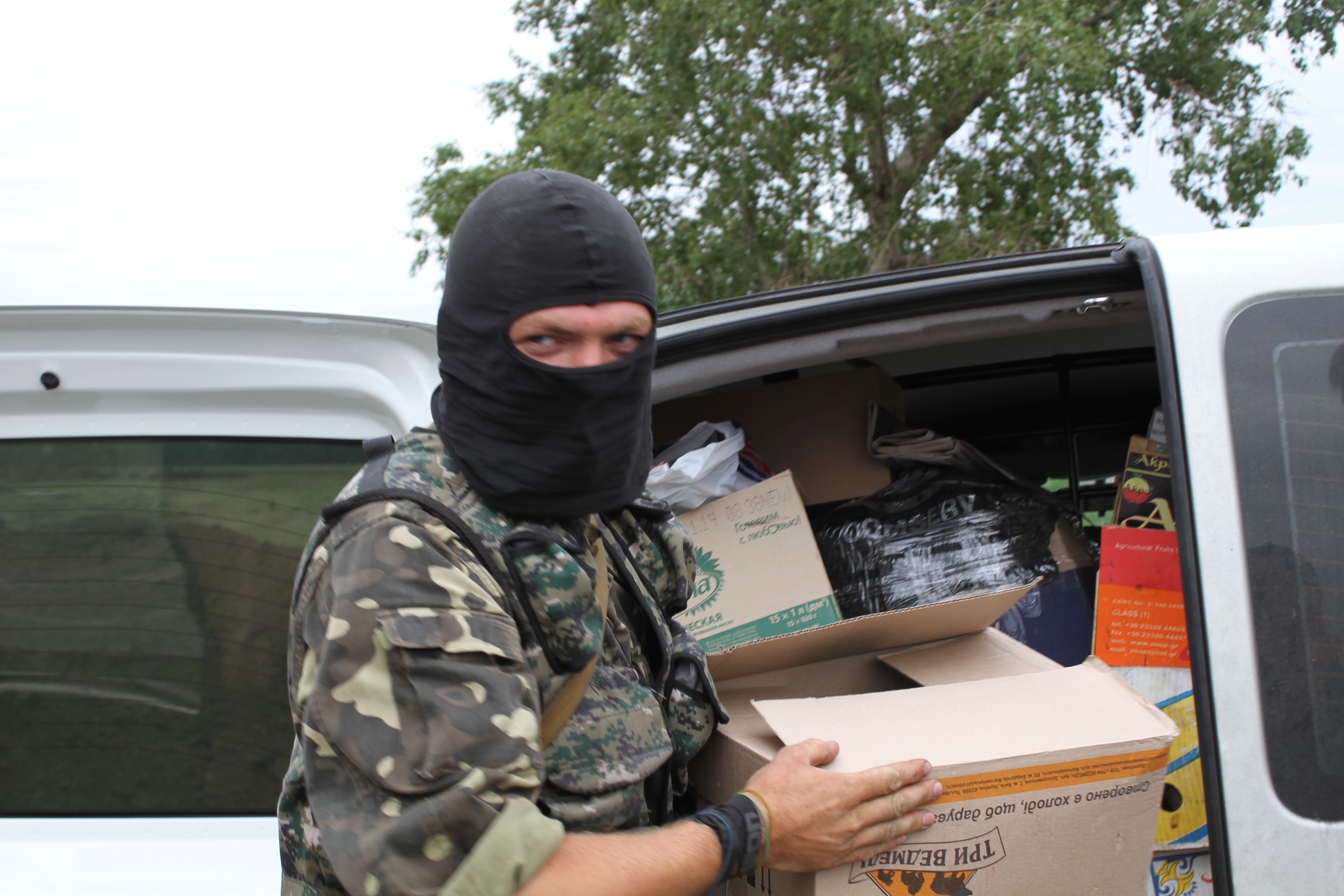 Рано вранці вони заїхали в звільнений напередодні Слов'янськ і біля церкви побачили людину в камуфляжі. Водій Сашко вийшов з машини, щоб розпитати його дорогу. Став пояснювати, що вони добровольці і везуть допомогу українським військовим.