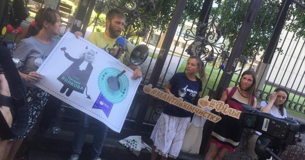 Рух ЧЕСНО провів акцію #СудиЧесноАбоСидиДовго під стінами Шевченківського районного суду м. Києва, де розглядають справу за обвинуваченням судді Світлани Волкової за ст. 375 КК України (ухвалення завідомо неправосудного рішення).