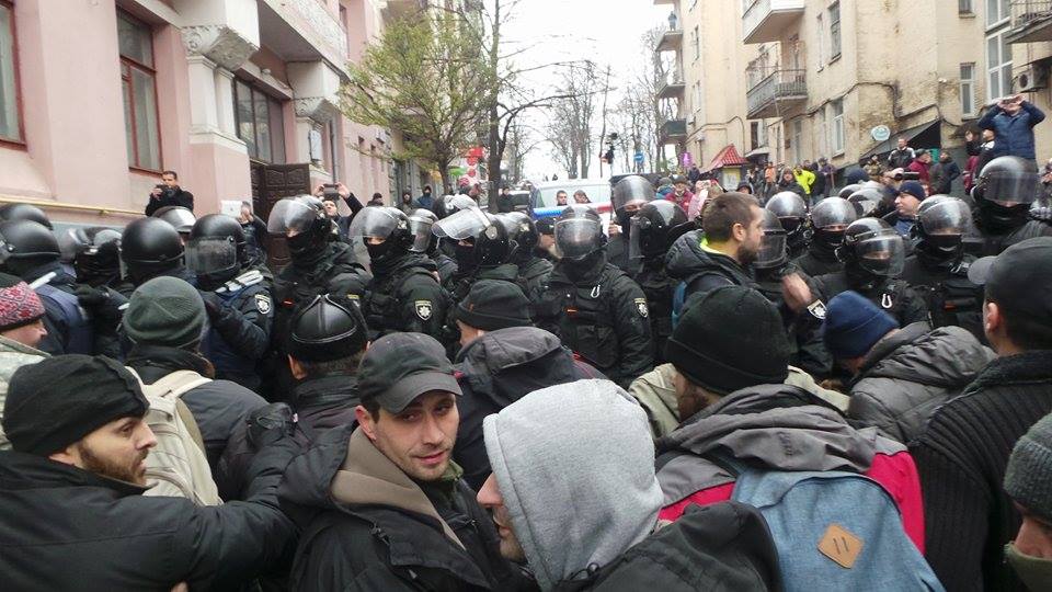 Здійснюються спроби прорвати кордон поліції. У хід пішли петарди. Почалися зіткнення. Один чоловік облив себе бензином і погрожував себе підпалити. Йому це зробити не дозволили. Прихильники Саакашвілі налаштовані радикально. Загрожують пустити в хід горючі суміші.