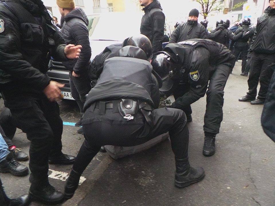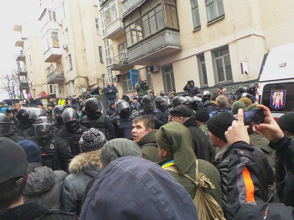 Прихильники Міхеіла Саакашвілі вишикувалися в кілька рядів, щоб не дозволити поліції його вивезти. Поліція перекрила вулицю.
