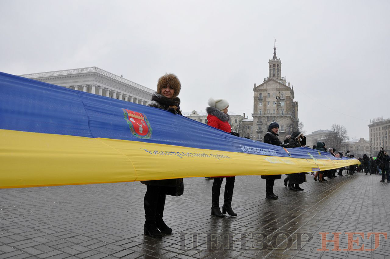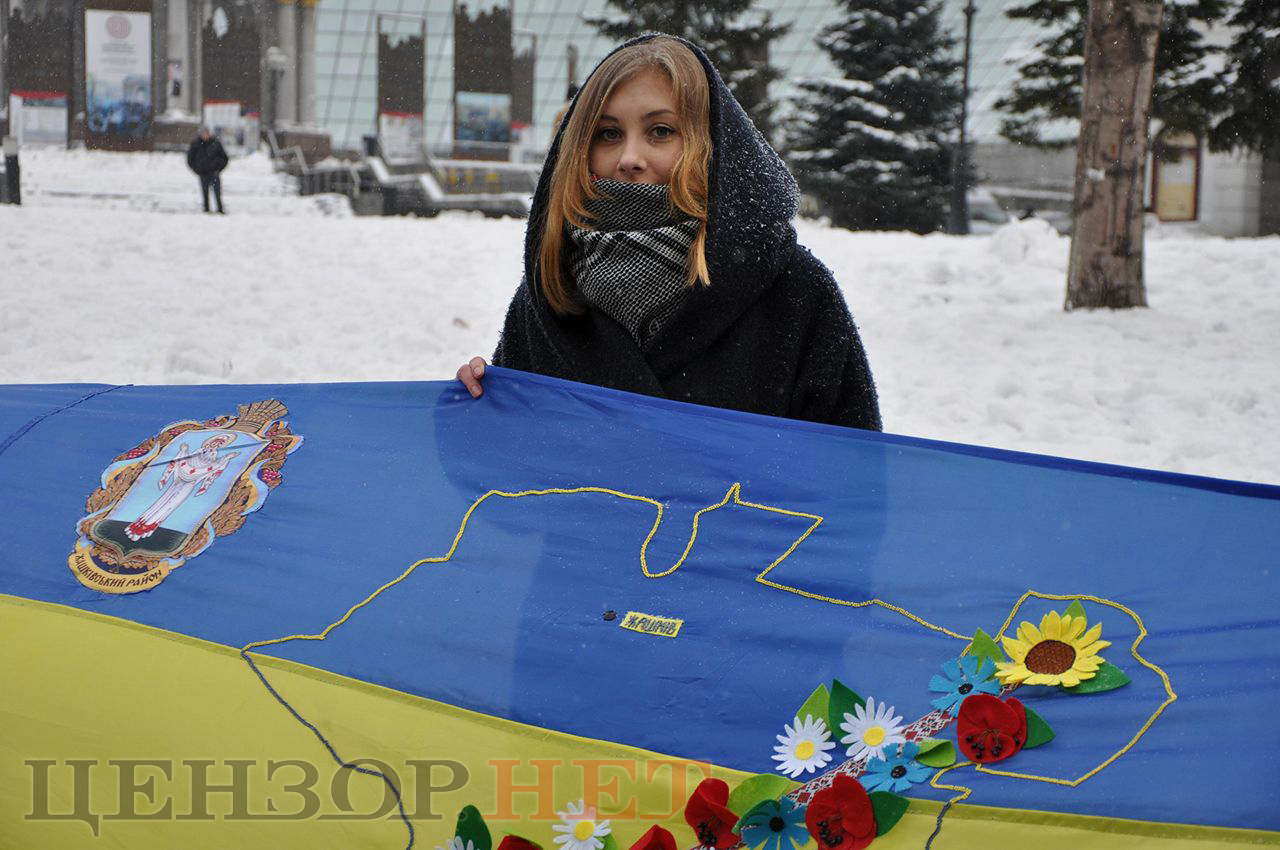 Українські казначеї розгорнули в центрі Києва найдовший прапор України. ВІДЕО+ФОТОрепортаж