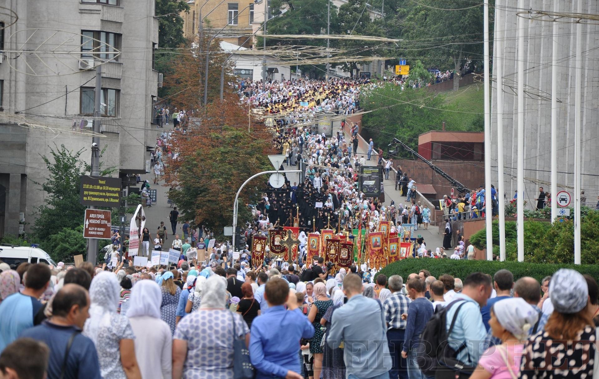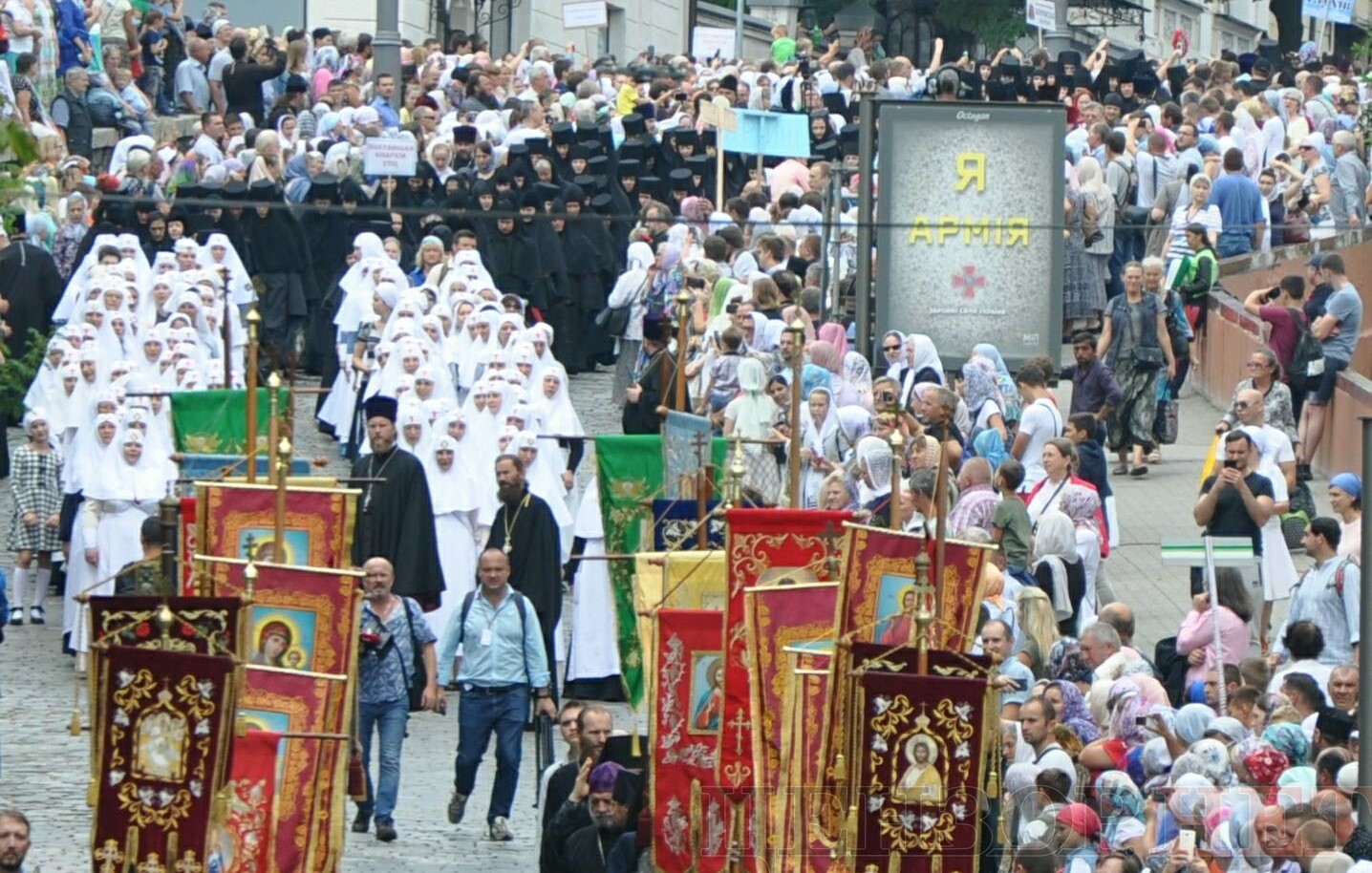 У центрі Києва через річницю святкування хрещення Київської Русі і хресної ходи Української православної церкви Московського патріархату посилили заходи безпеки. Віряни УПЦ МП, які прибули з різних міст України, зійшли на Володимирську гірку, щоб взяти участь в урочистому молебні, який проводить митрополит Української православної церкви Онуфрій. Після цього вони пройшли хресною ходою до Києво-Печерської Лаври.
