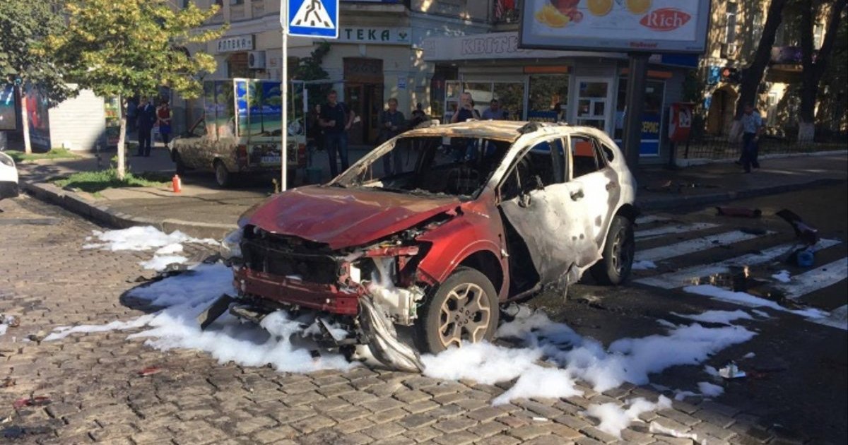 Очевидці розповідають, вибух стався, коли Шеремет зупинився, щоб виїхати на головну дорогу. І зауважують про велику силу вибуху: "Деталі аж сюди долетіли". Пізніше були оприлюднені кадри моменту вибуху автомобіля з журналістом Шереметом.