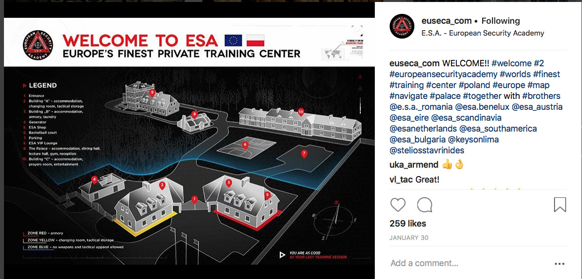 Керуючий директор ESA Бартош Бриль заявив Bellingcat, що його компанія відмовилася б проводити тренування для прихильників праворадикальної ідеології. Але як мінімум кілька випускників курсів публікували в соцмережах свої фото з піднятими в нацистському вітанні руками або фотографії, на яких видно, що у них є характерні для расистів татуювання, - стверджують журналісти.