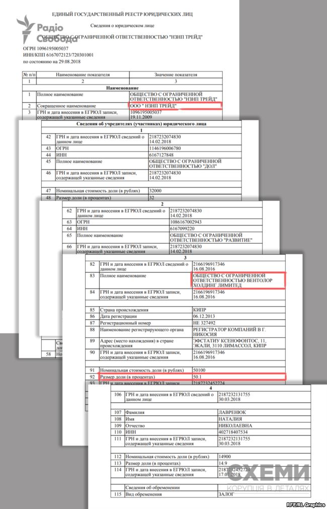 Ventolor Holding LTD, зі свого боку, володіє часткою в 50,1% російського ТОВ "НЗНП Трейд".
