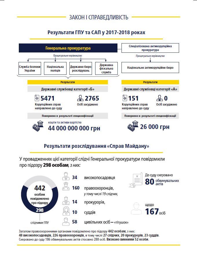 При цьому слідчі ГПУ у "справах Майдану" повідомили про підозру 442 особам. До суду передано 186 обвинувальних актів. Визнано винними 52 особи.