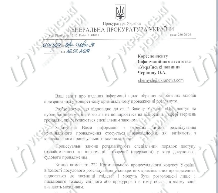 Про це йдеться у відповіді Генпрокуратури на запит Українських Новин, передає Цензор.НЕТ.