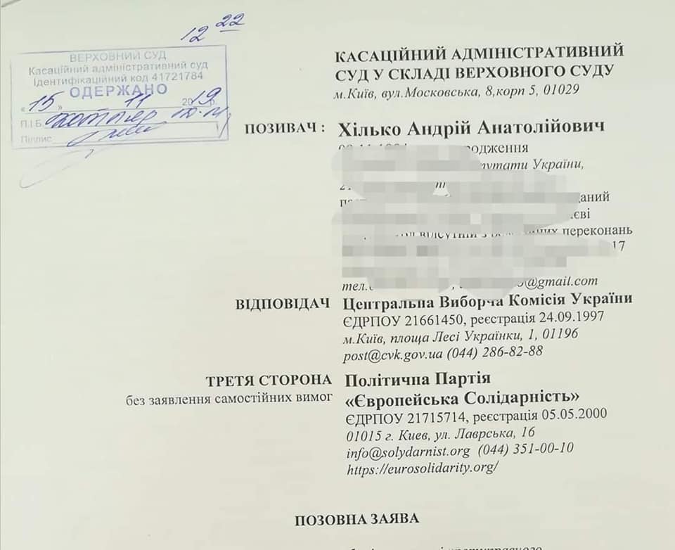 Позов подав Андрій Хілько. На сайті ЦВК повідомляється, що він був кандидатом у нардепи, самовисуванцем у 219 окрузі (м. Київ). Про себе він вказав, що є директором БО "Благодійний Фонд "Хілько". У ЗМІ його називають адвокатом. Зазначимо, що у квітні 2019 року Хілько подавав позови про скасування реєстрації Володимира Зеленського кандидатом у нардепи.