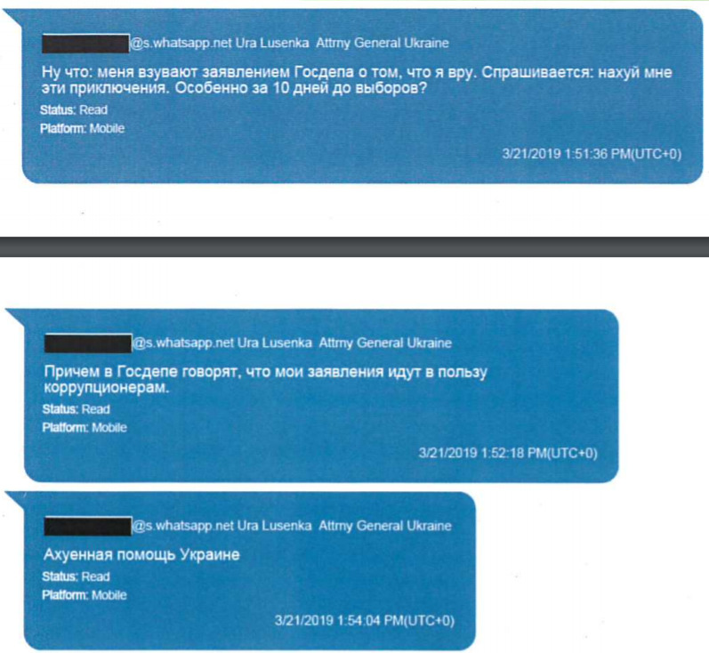 Як відомо, 15 січня Палата представників США опублікувала нові факти у справі про імпічмент президента Дональда Трампа у вигляді переписки в месенджері WatsApp помічника Руді Джуліані Льва Парнаса з різними людьми з орбіти президента України Володимира Зеленського, а також главою МВС Арсеном Аваковим, генпрокурором Юрієм Луценком.