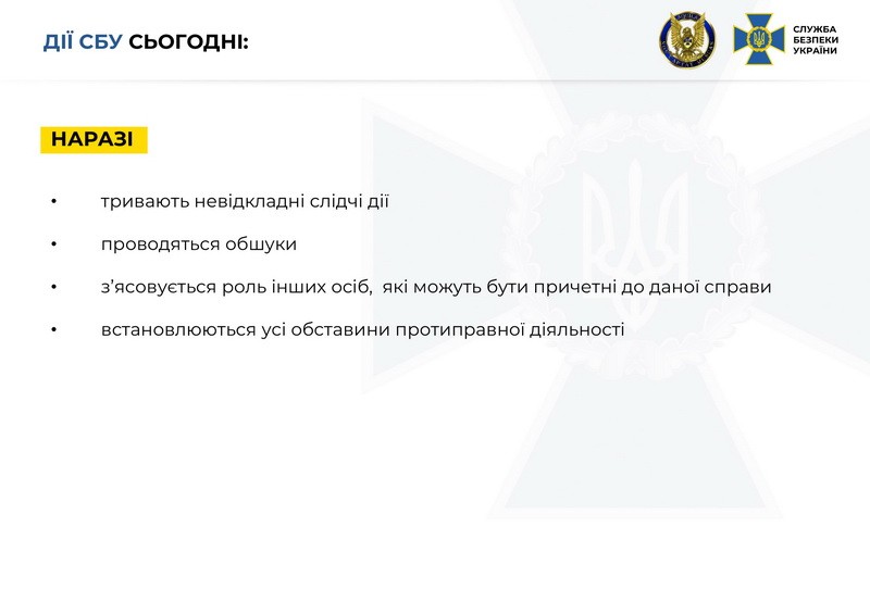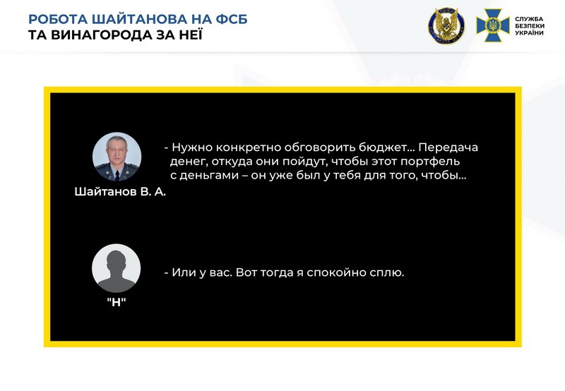 "Окремо слід наголосити, що використовуючи своє службове становище Шайтанов отримував розвідувальну інформацію від старших та вищих офіцерів Служби. У ході досудового розслідування буде визначено їх причетність до розголошення відомостей з обмеженим доступом. Вирішується питання щодо оголошення Валерію Шайтанову про підозру у скоєнні злочинів, передбачених ст.111 ("Державна зрада") і ст. 258 ("Терористичний акт") Кримінального кодексу України та обрання запобіжного заходу. Процесуальне керівництво по вказаному кримінальному провадженню здійснюється Офісом Генерального прокурора України", - резюмували в СБУ.