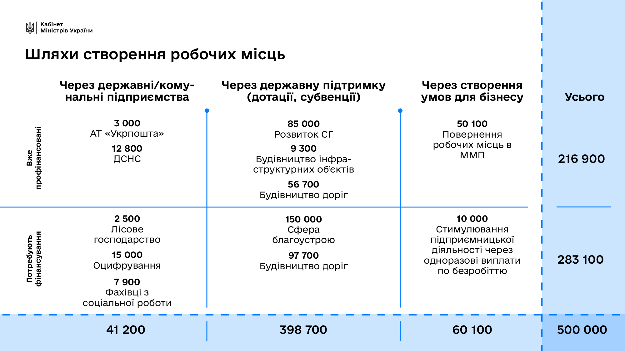 Нагадаємо, прем'єр-міністр Денис Шмигаль 10 квітня заявив, що Кабінет міністрів має намір створити у травні 500 тисяч робочих місць.