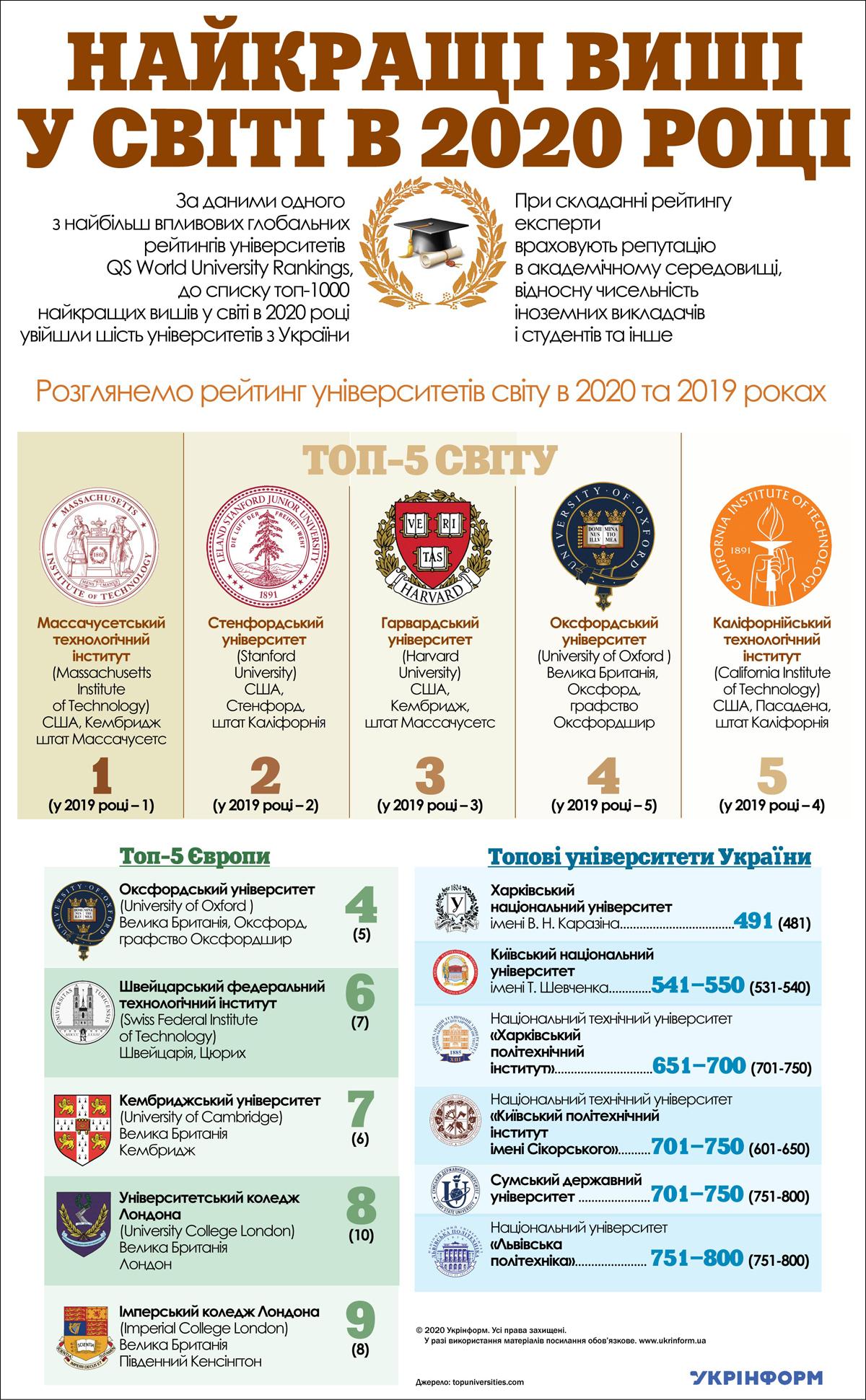 Шість українських вишів увійшли до 1000 найкращих університетів світу. ІНФОГРАФІКА