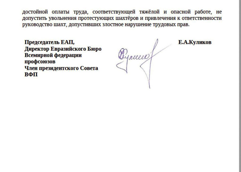 На підтримку страйкарів виступила "міжнародна асоціація профспілок" (головний офіс в Москві) написавши ватажку терористів "ЛНР" Пасічнику відкритого листа з вимогою вплинути на ситуацію.
