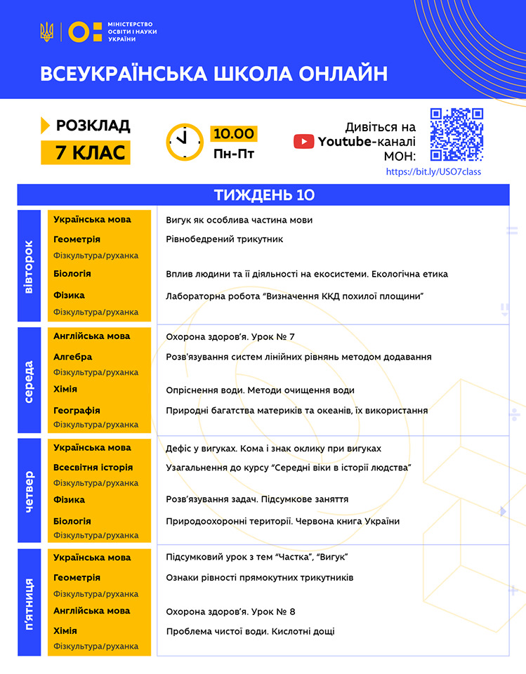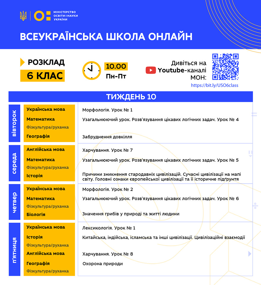 Також Міносвіти розмістило до свого посту розклад з темами на цей тиждень.
