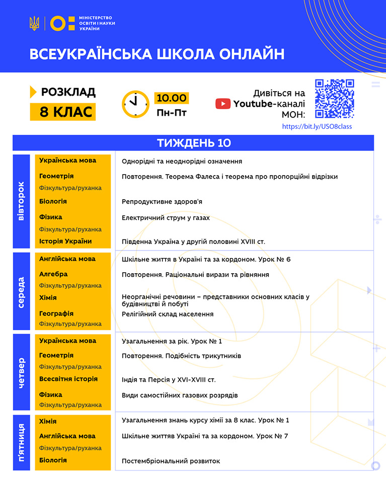 Сьогодні розпочинається останній, 10-й тиждень, Всеукраїнської школи онлайн.