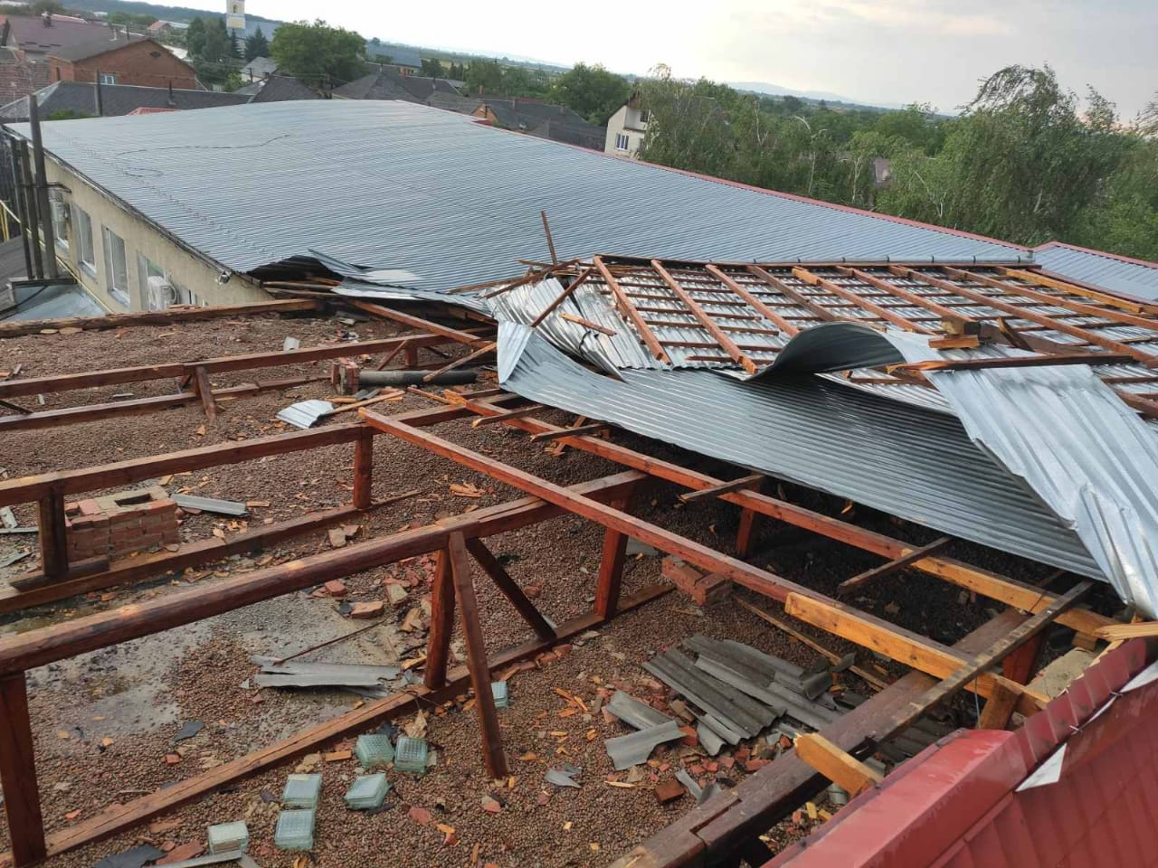 "29 червня о 18:08 в оперативно-рятувальну службу надійшло повідомлення, що через складні погодні умови у с. Концово Ужгородського району вітром пошкоджено покрівлю будівлі амбулаторії загальної практики сімейної медицини на площі близько 80 кв.м. Також відбулося й падіння дерева на проїжджу частину в цьому населеному пункті", - йдеться в повідомленні.