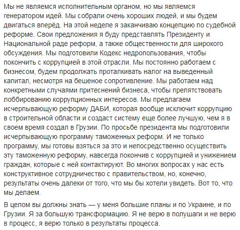 "На цьому тижні я закінчую концепцію щодо судової реформи. Свої пропозиції я буду представляти президенту і Національній раді реформ, а також громадськості для широкого обговорення", - зазначив Саакашвілі.