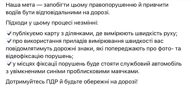 "Від сьогодні з'явиться ще 43 нові та розширено вже 5 існуючих ділянок, де патрульні вимірюватимуть швидкість приладом TruCAM", - написав він.