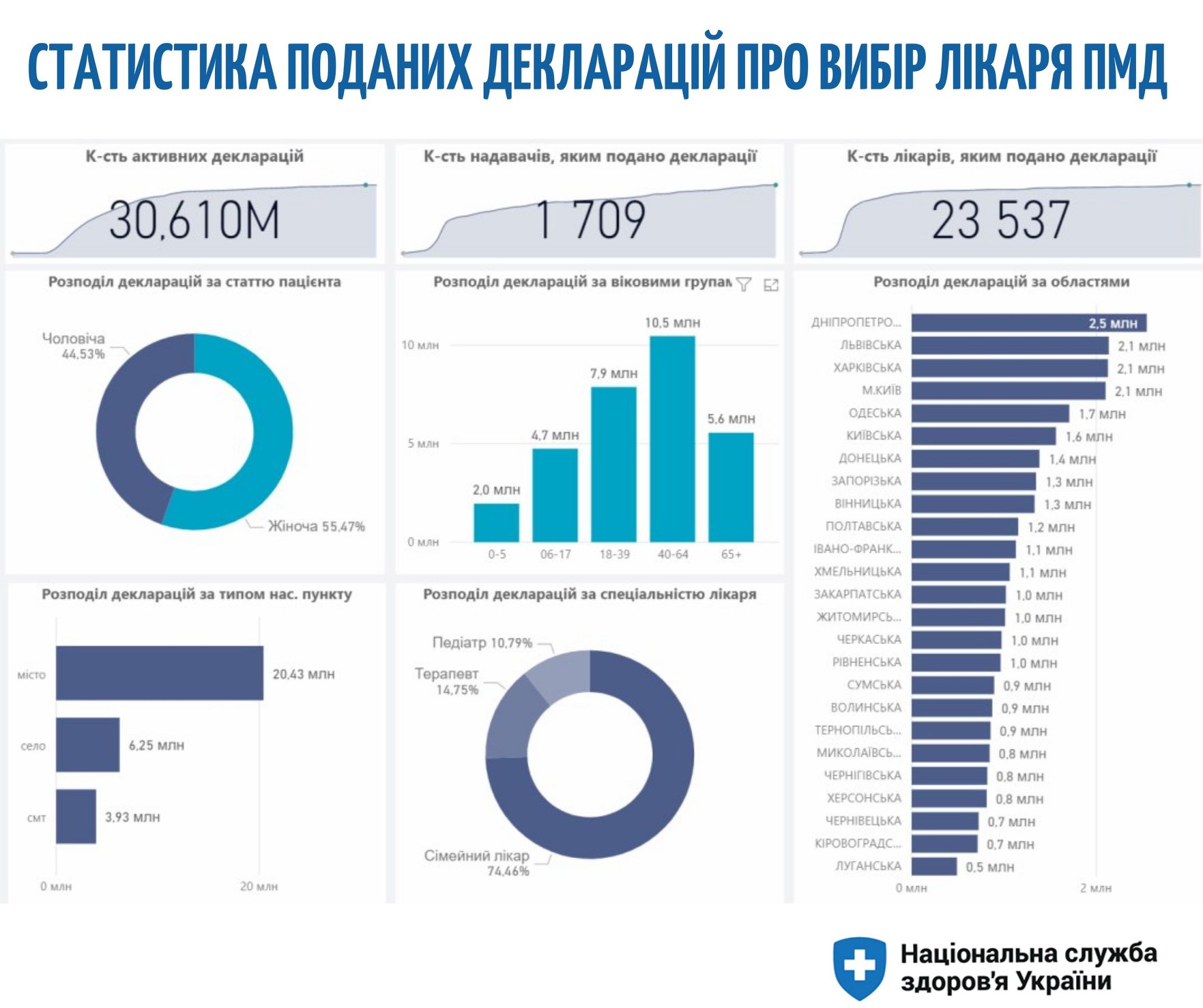 Українці уклали 30,6 млн декларацій з лікарями первинної медичної допомоги, - НСЗУ. ІНФОГРАФІКА