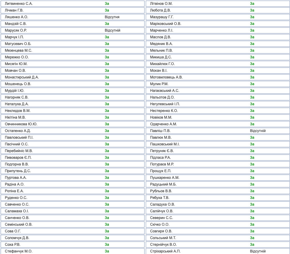 "За майбутнє" - 21 з 24 (решта були відсутні або не голосували);