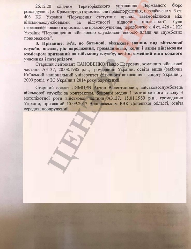 У розпорядженні редакції Цензор.НЕТ є доповідь про перекваліфікацію кримінальної справи за фактом травмування військовослужбовця.