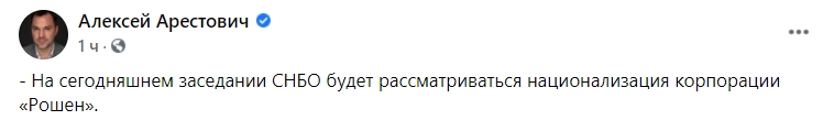 "На сьогоднішньому засіданні РНБО розглядатиметься націоналізація корпорації "Рошен", - Арестович