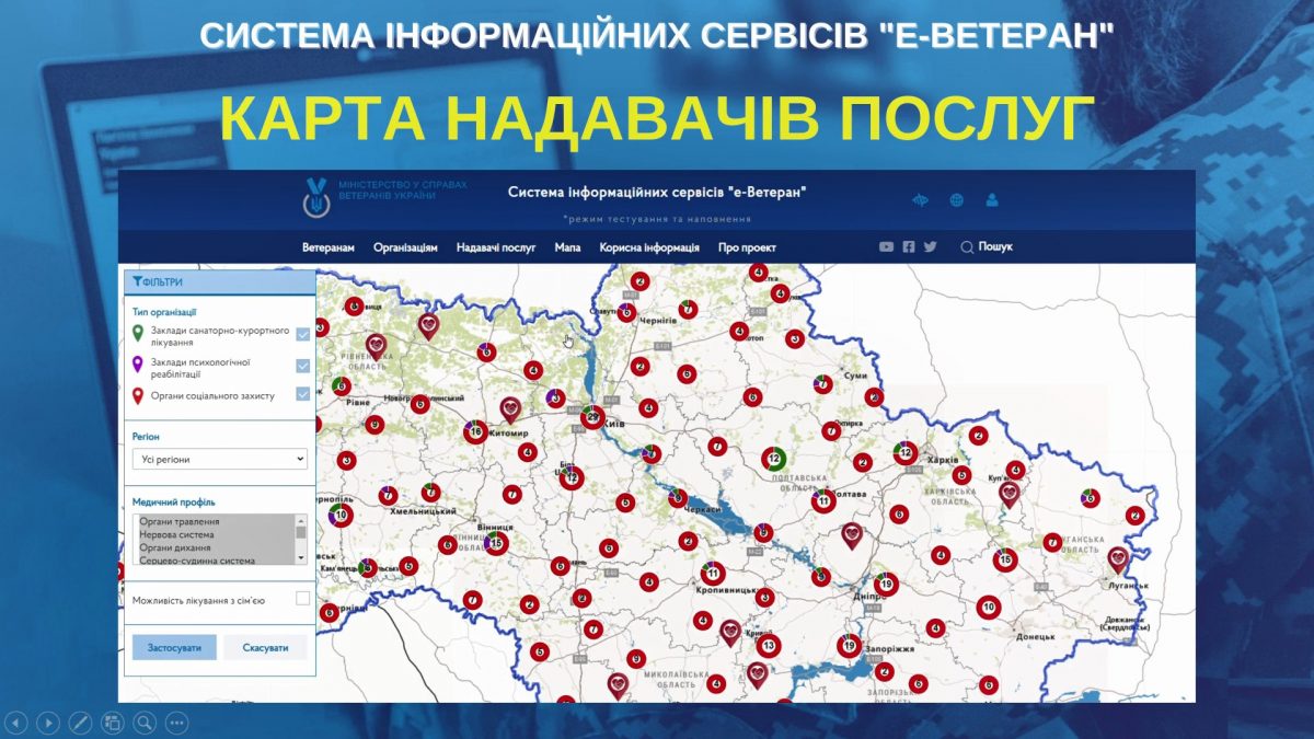 Система складатиметься з декількох модулів. Сьогодні представили перший із них - з інформацією про санаторно-курортні установи і суб'єкти надання послуг з психологічної реабілітації, які працюють з ветеранами.