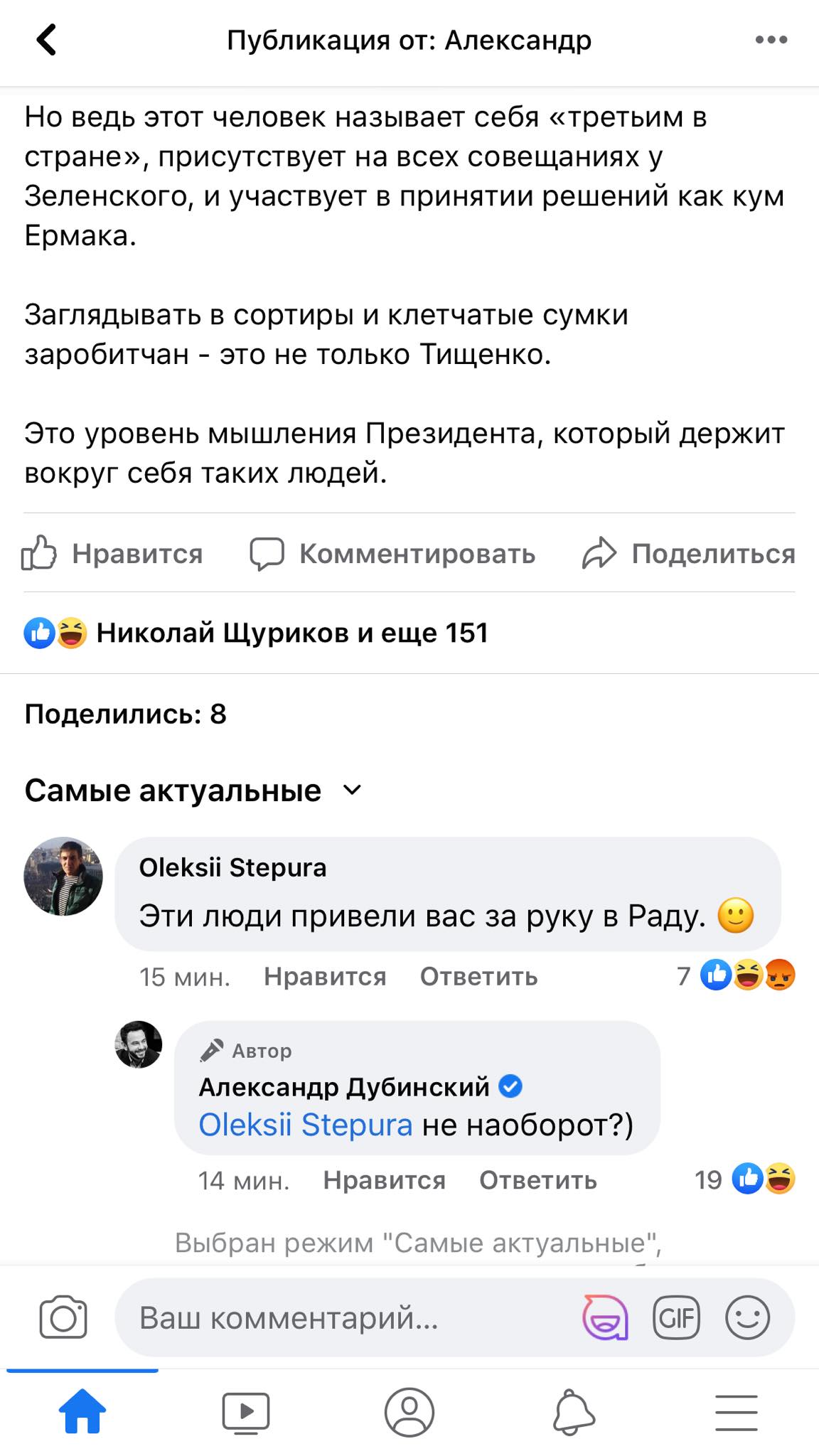 Заглядати в нужники - це рівень мислення і Тищенка, і президента, - Дубінський