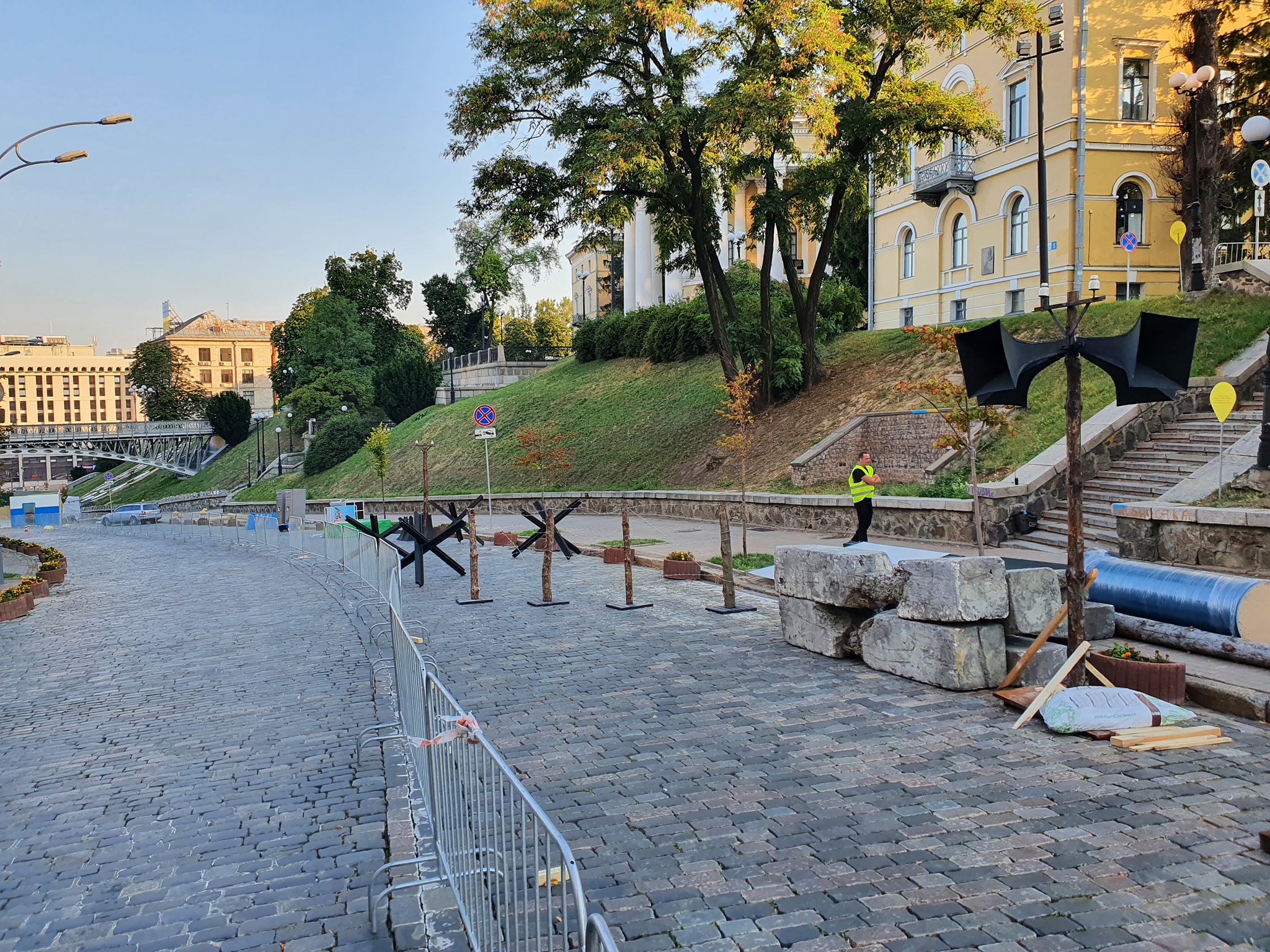 На Алеї Героїв Небесної Сотні в центрі Києва монтують декорації для поки невідомої святкової постановки прямо посеред меморіалу.