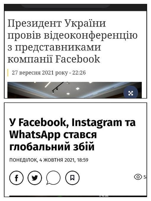 В Україні сервіси недоступні приблизно з 18:30. Нинішній збій у роботі Facebook і в додатках і сервісах, що належать компанії, користувачі інших мереж називають найтривалішим за всю історію існування.