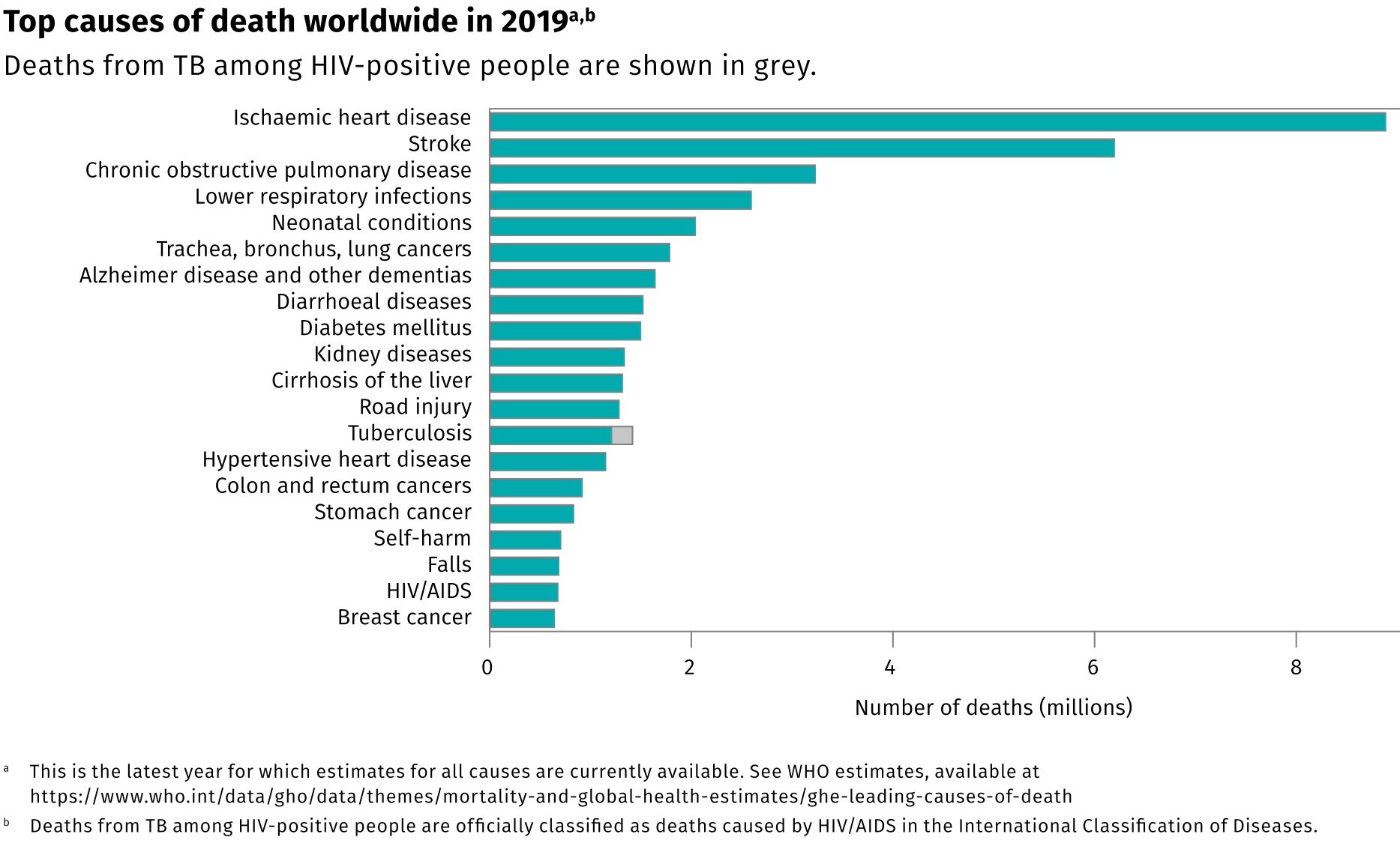 Основні причини смерті у світі у 2019 році: