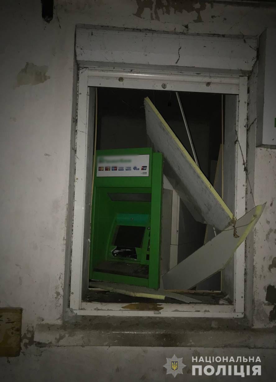 Повідомлення про те, що по вулиці Незалежності у селищі Печеніги стався вибух банкомата, надійшло до поліції 30 грудня о 02:46. В ході огляду місця події фахівці поліції встановили, що зловмисники помістили саморобні вибухові пристрої до сейфового відсіку банкомата, розташованого у приміщенні лікарні.