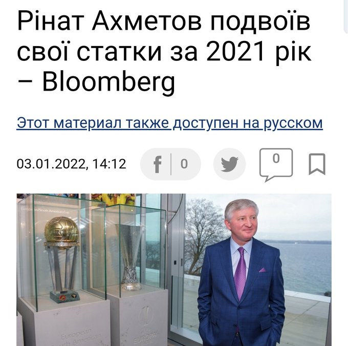 Завдяки Володимиру Зеленському особисті статки Ріната https://twitter.com/hashtag/%D0%90%D1%85%D0%BC%D0%B5%D1%82%D0%BE%D0%B2%D0%B0?src=hashtag_click #Ахметова зросли лише на 55% або на $4,14 млрд за 2021 рік. Якби не боротьба - статки могли зррости ще більше!