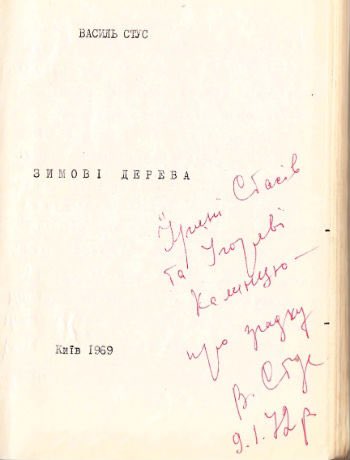 Титул самвидавної книжки В. Стуса "Зимові дерева", яка потім стане вещдоком у кримінальній справі