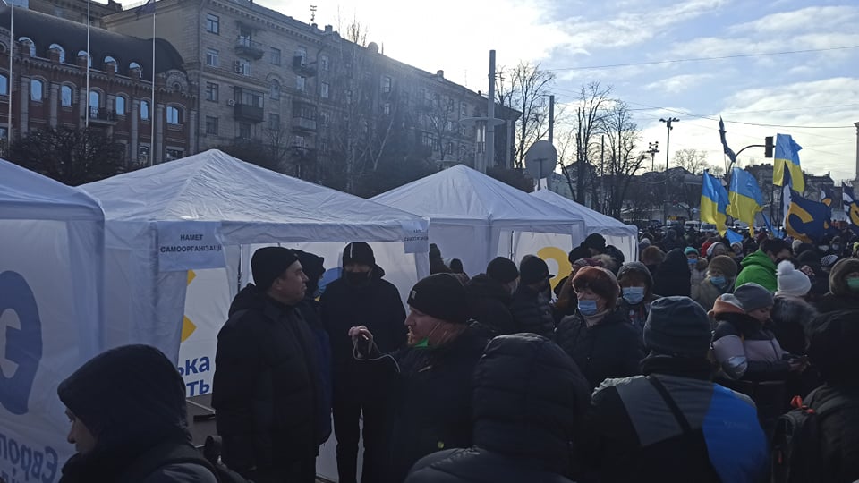 Біля суду сталася невелика штовханина. Правоохоронці запропонували протестувальникам відмовитись від встановлення пічок із відкритим вогнем на тротуарі. Присутні стверджують, що пічки закриті, безпечні і вони потрібні їм, щоб готувати гарячий чай для учасників акції.