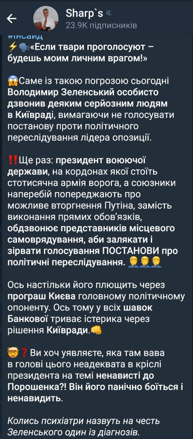 "Ми сидимо в цій залі, сидимо довго, багатьом їхнім депутатам не подобається те, що відбувається. І багато хто підходить з фразами: "ну ви ж до себе візьмете?" Я не знаю, кажуть це жартома чи напівжартома, але ми спілкуємось. Нам багато чого розповідають. Це правда. Але навіть якщо не будувати теорій і не користуватись інформацією джерел, то вони включно з президентом Зеленським наговорили достатньо, щоб казати, що ця справа (проти лідера "ЄС", п'ятого президента Порошенка. - Ред.) - політична і замовна", - пояснила парламентар.
