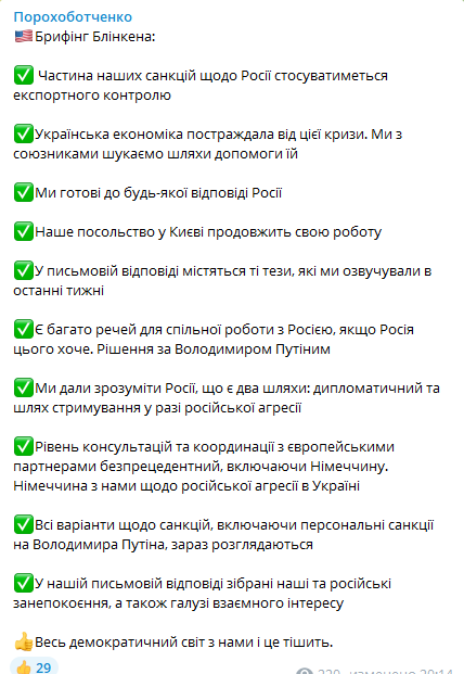 За словами Столтенберга, документ направлений від імені всіх тридцяти союзників, які є єдиними з цього питання. "Сьогодні ми передали наші письмові пропозиції Росії. Ми зробили це паралельно зі США", - повідомив генсек НАТО.