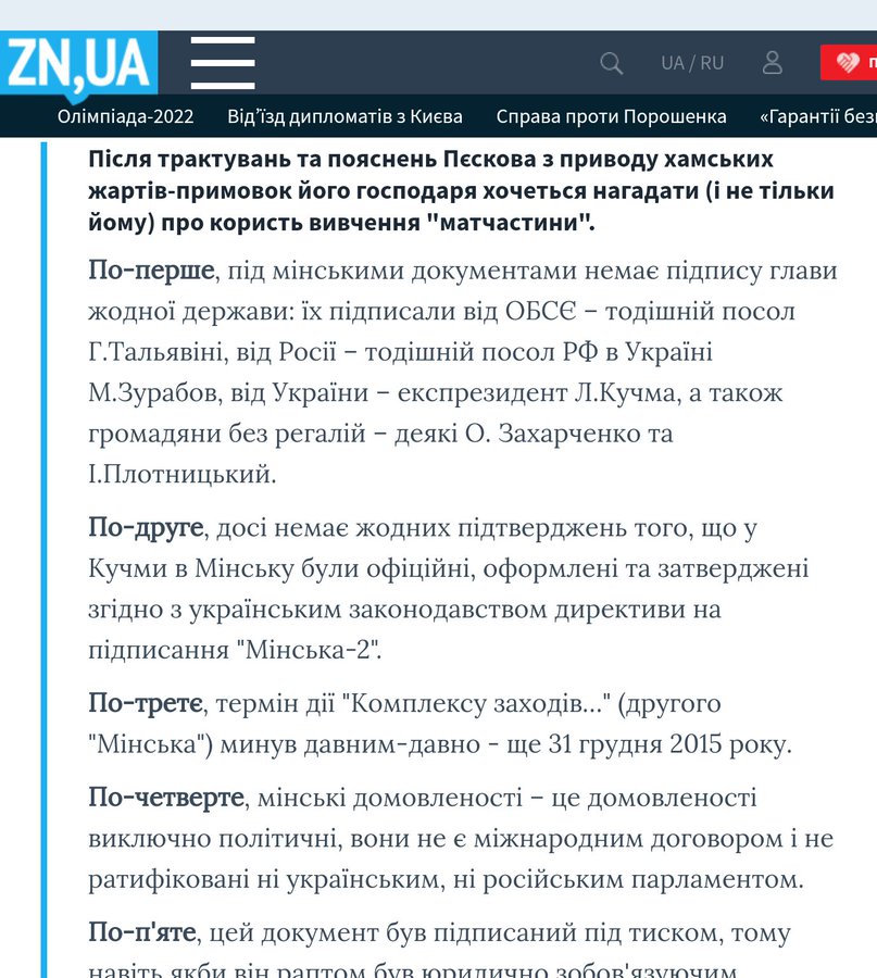 Ну-ну, а "https://uk.wikipedia.org/wiki/%D0%9A%D0%BE%D0%BC%D0%BF%D0%BB%D0%B5%D0%BA%D1%81_%D0%B7%D0%B0%D1%85%D0%BE%D0%B4%D1%96%D0%B2_%D1%89%D0%BE%D0%B4%D0%BE_%D0%B2%D0%B8%D0%BA%D0%BE%D0%BD%D0%B0%D0%BD%D0%BD%D1%8F_%D0%9C%D1%96%D0%BD%D1%81%D1%8C%D0%BA%D0%BE%D0%B3%D0%BE_%D0%BF%D1%80%D0%BE%D1%82%D0%BE%D0%BA%D0%BE%D0%BB%D1%83 11. Проведення конституційної реформи в Україні з набуттям чинності ... нової конституції, яка передбачає в якості ключового елемента децентралізацію (з урахуванням особливостей окремих районів Донецької та Луганської областей, узгоджених з представниками цих районів), а також прийняття постійного законодавства про особливий статус окремих районів Донецької та Луганської областей "... включно з повною амністією, "народною міліцією" на танках, власними судами, прокурорами, та з інкорпорованими до ВР депутатами з новітніх громадян рф, що сформують нам з якимось опзж, слугами та майбахами свою більшість.