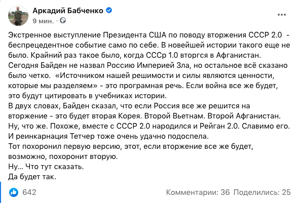 "Ми повинні менше зосереджуватися на тому, що говорить Росія, і більше зосереджуватися на тому, що вона робить. Ми ще не побачили жодного виведення збройних сил, що оточують Україну, жодного відступу, жодного припинення так званих навчань, у яких, як стверджує Росія, бере участь", - сказав Блінкен.