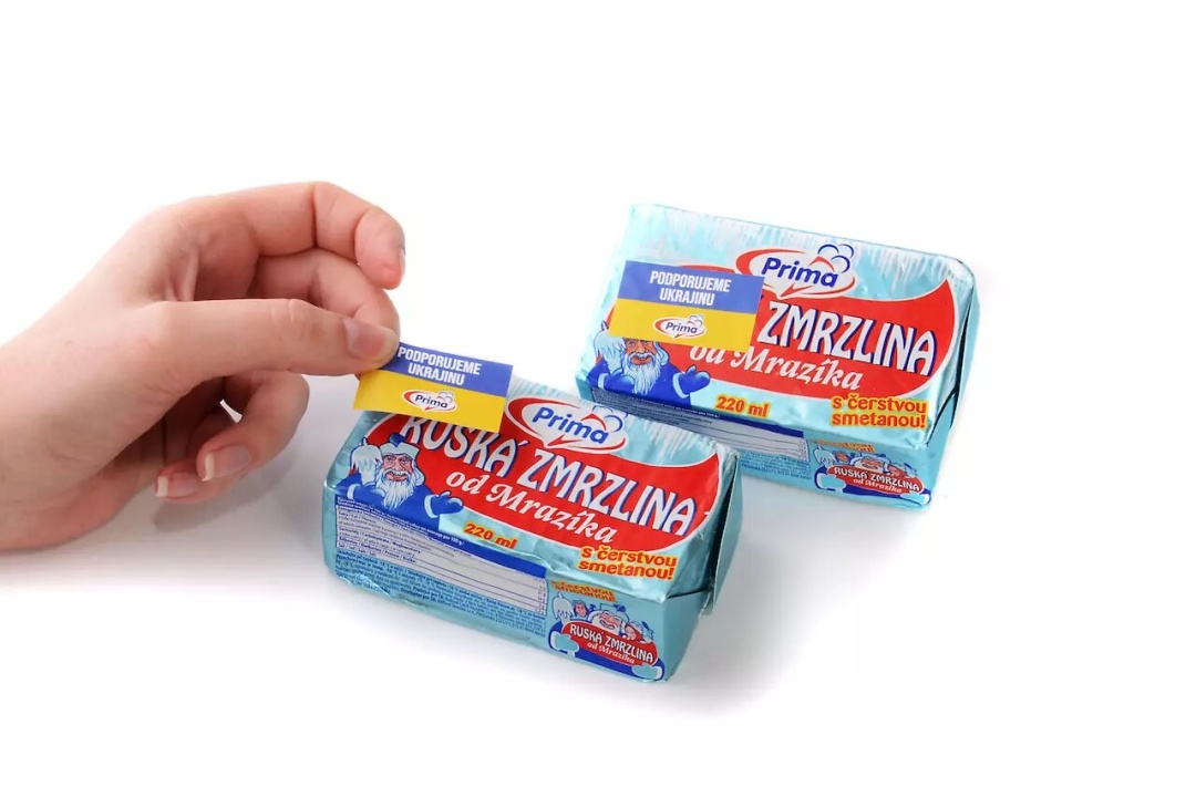 Відомий чеський виробник морозива Prima перейменував свій продукт: на морозиві слово "Російський" замінять на "Ми підтримуємо Україну".