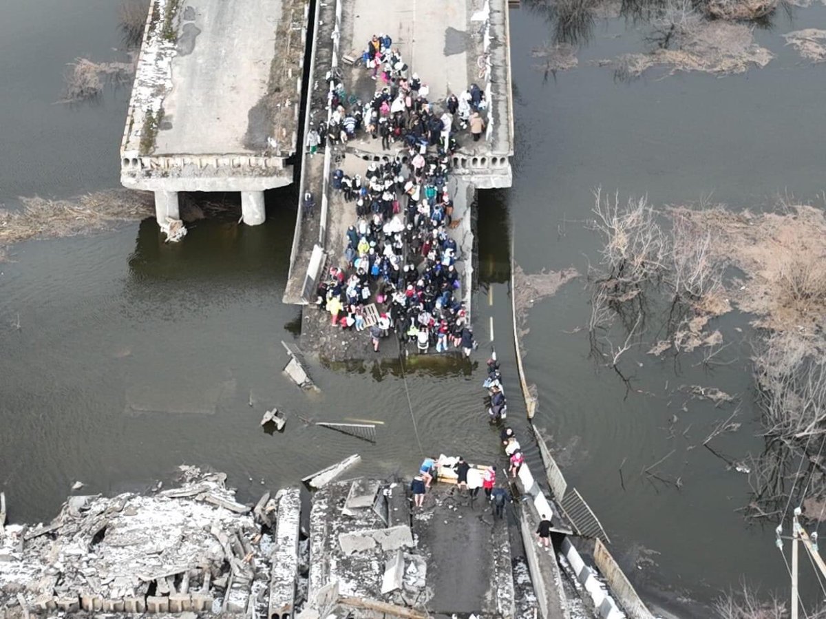 Під час евакуації з Ірпеня на Київщині мирні жителі вимушені були на морозі убрід переходити річку.