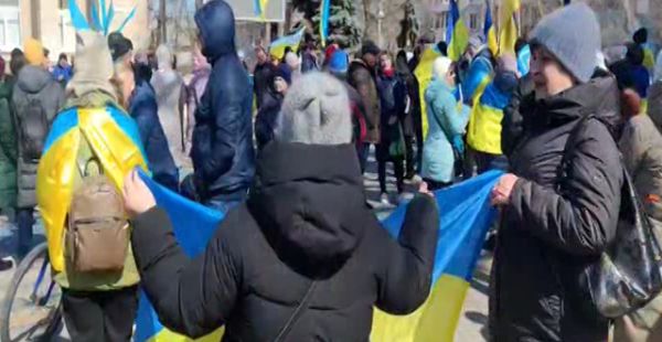 У Каховці Херсонської області під час мирного мітингу 3 квітня російські військові захопили щонайменше чотирьох людей.